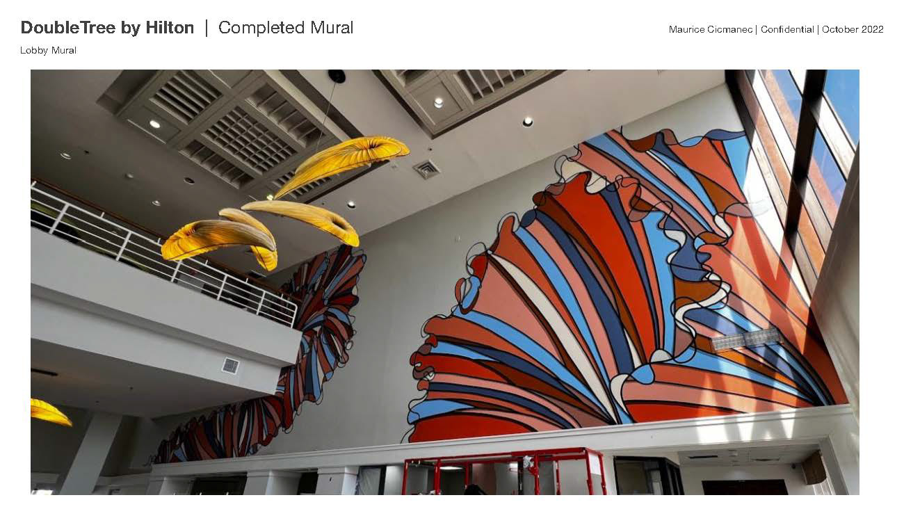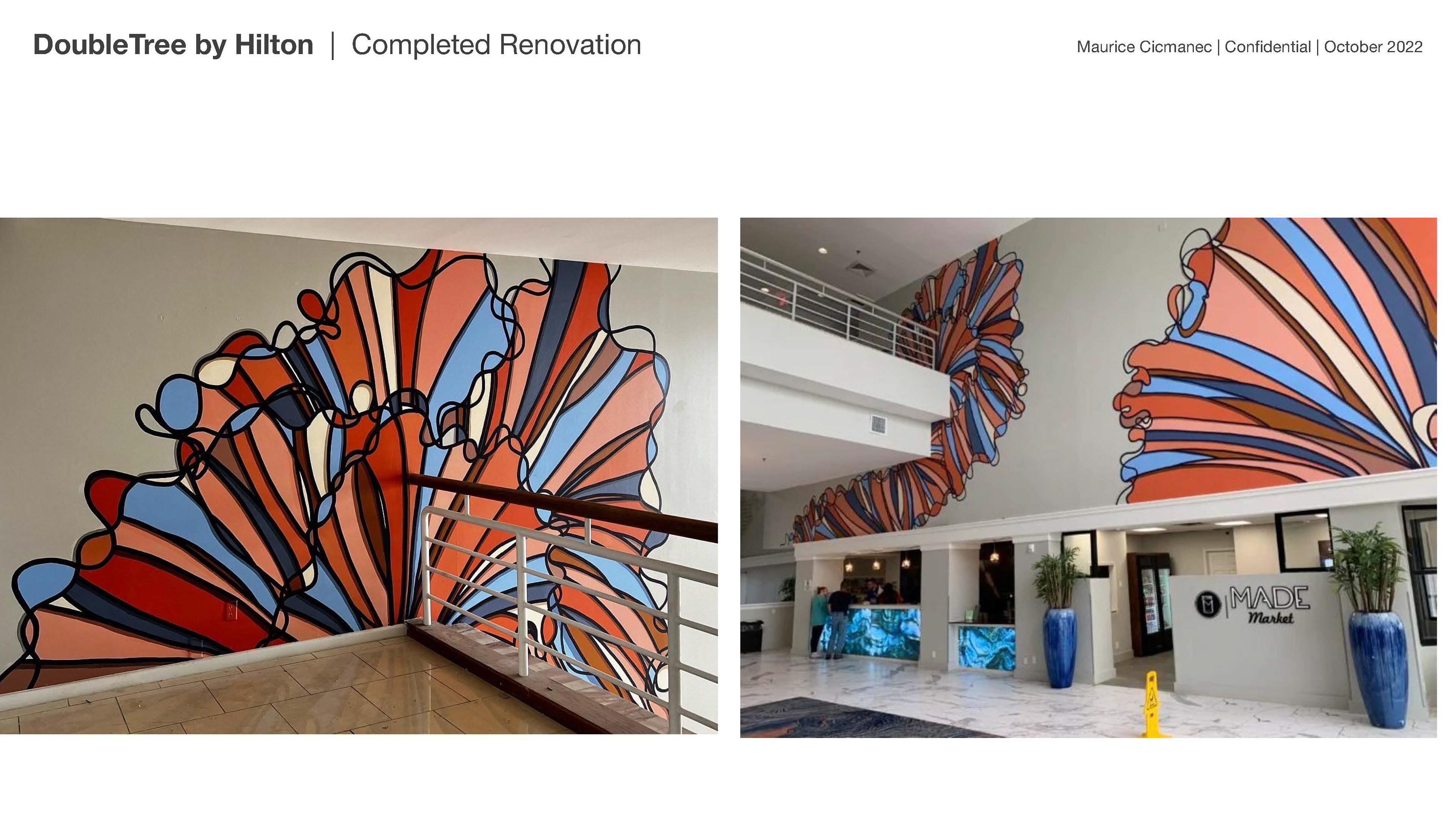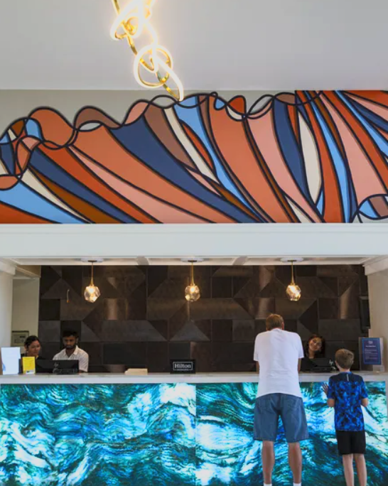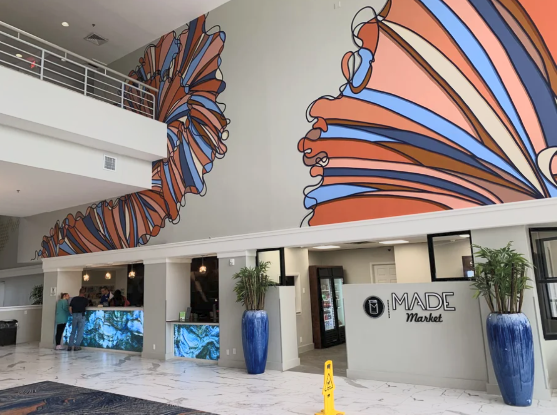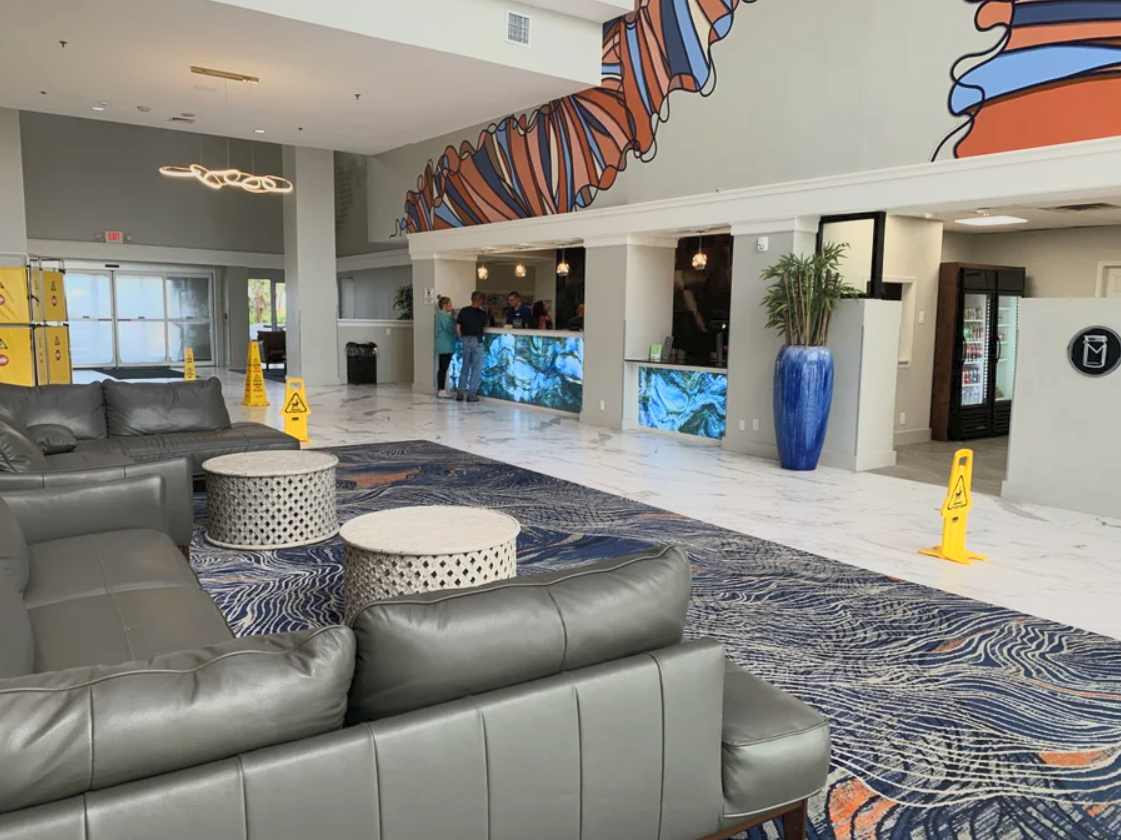 This included a 60' x 18' mural that leads from the concierge desk to the beach access and various other design elements to tie the lobby together.