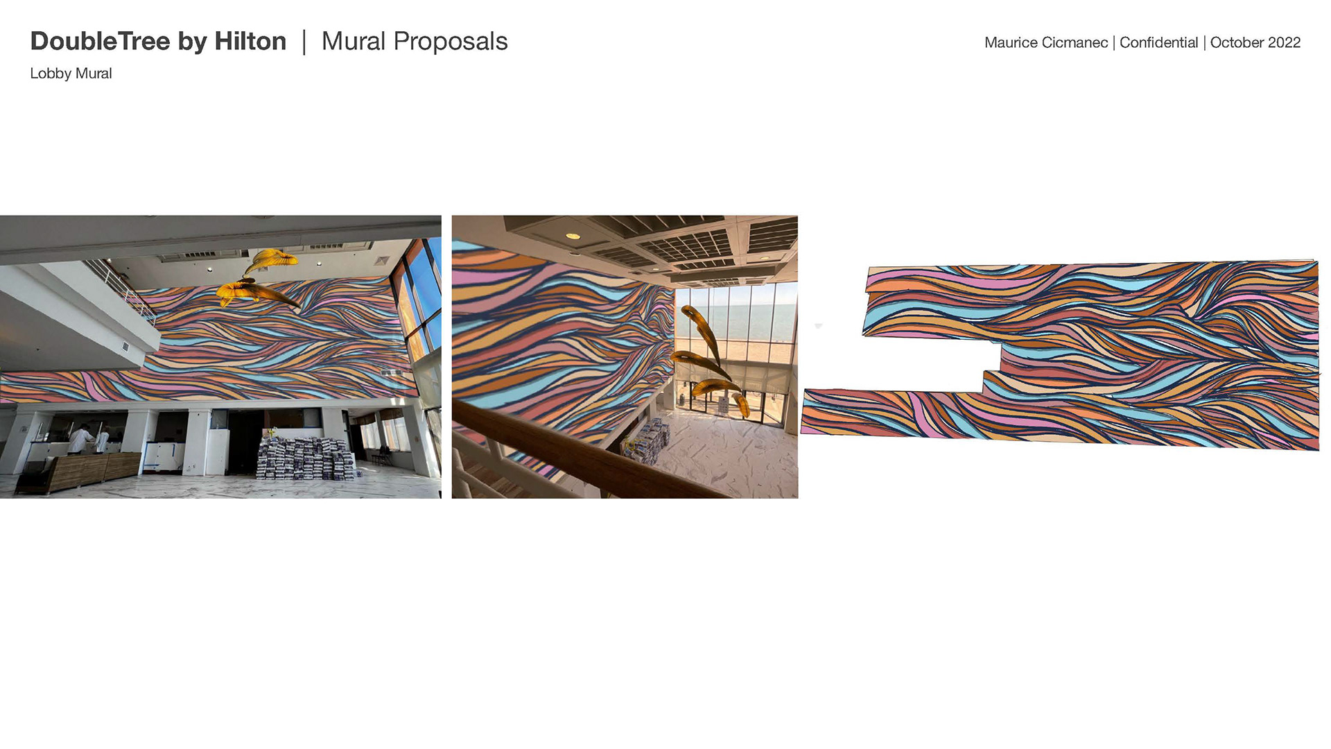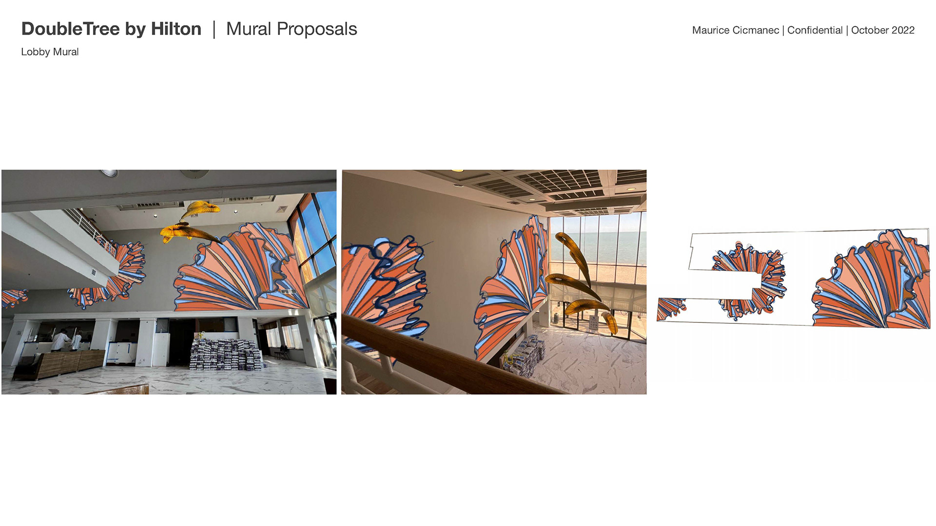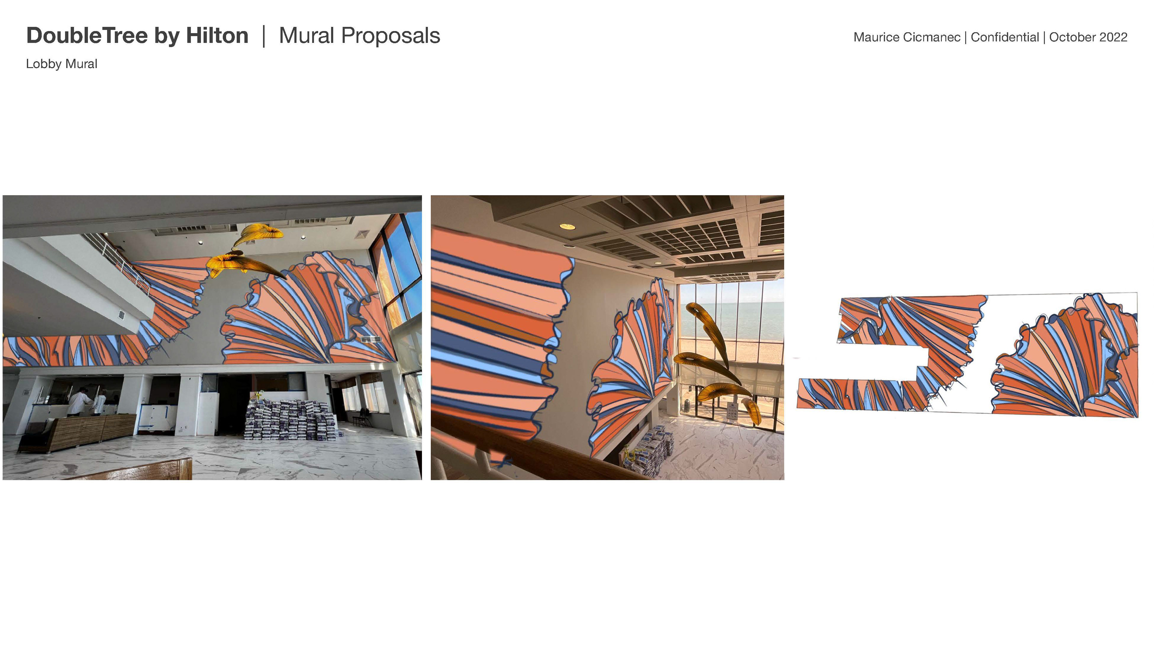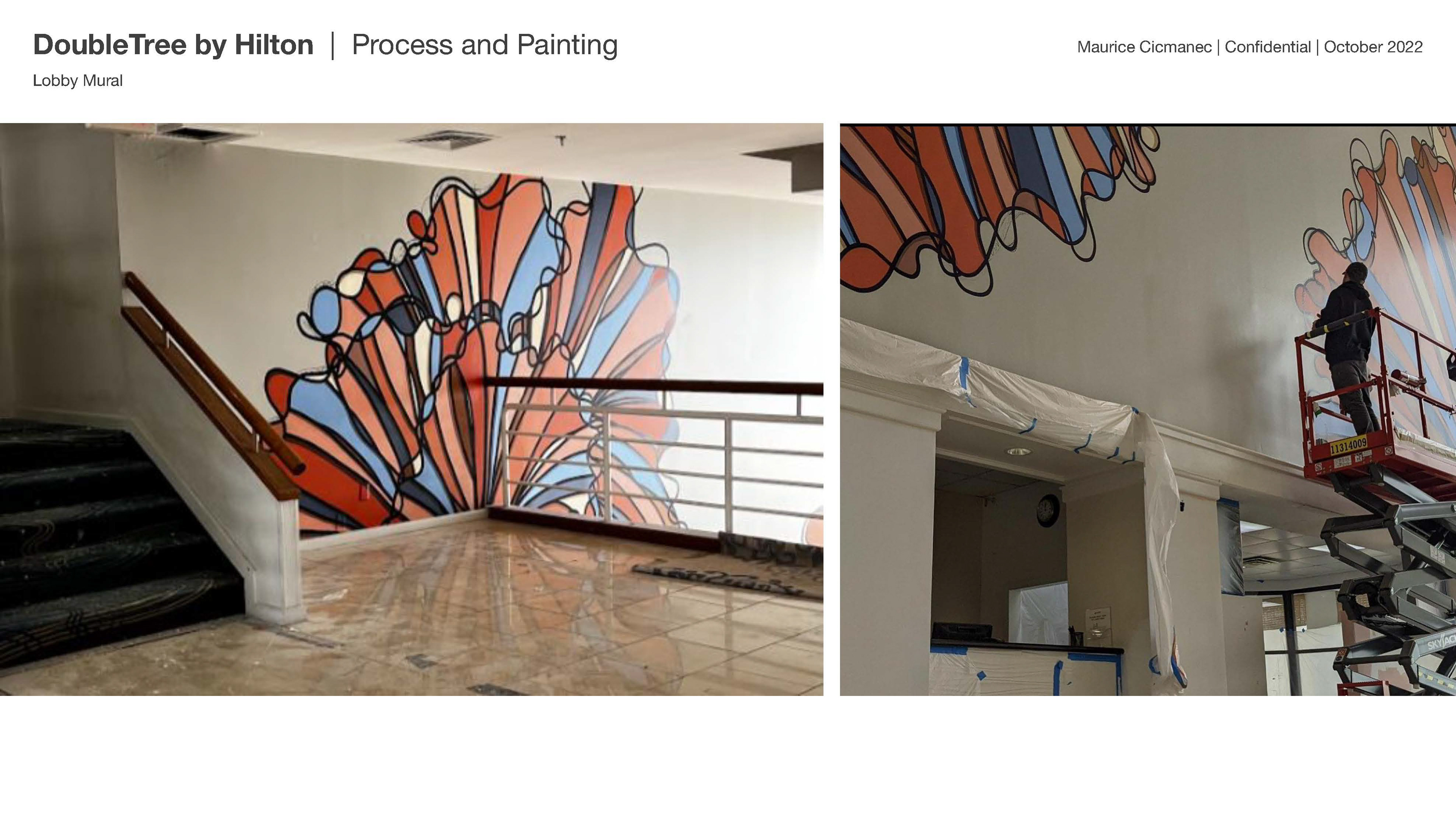 This included a 60' x 18' mural that leads from the concierge desk to the beach access and various other design elements to tie the lobby together.